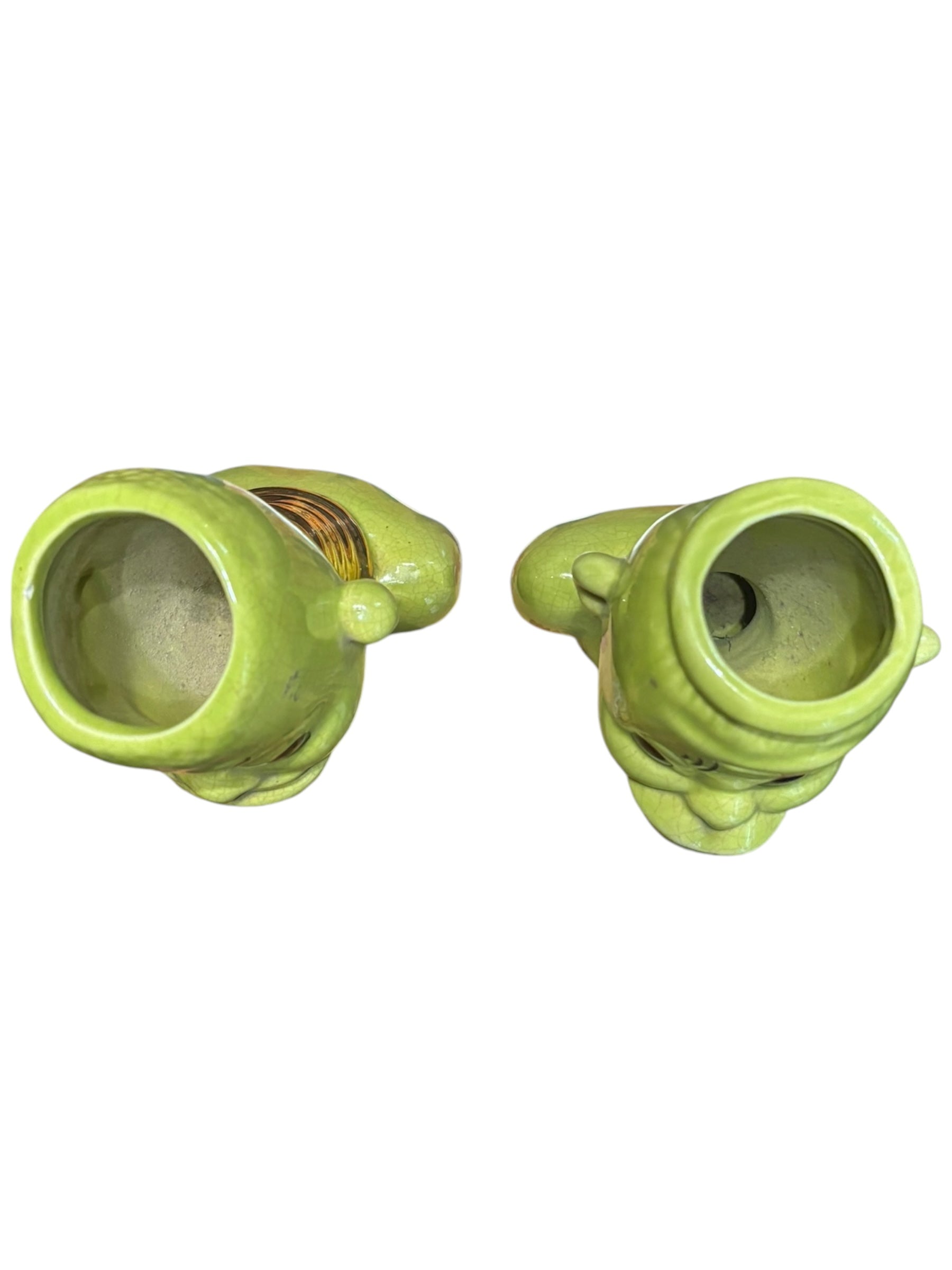 Set of 2 Vintage MCM Blackamoor Tribal Ceramic Green African Woman and Man Head Neck Rings Vase Planter 5.5” tall