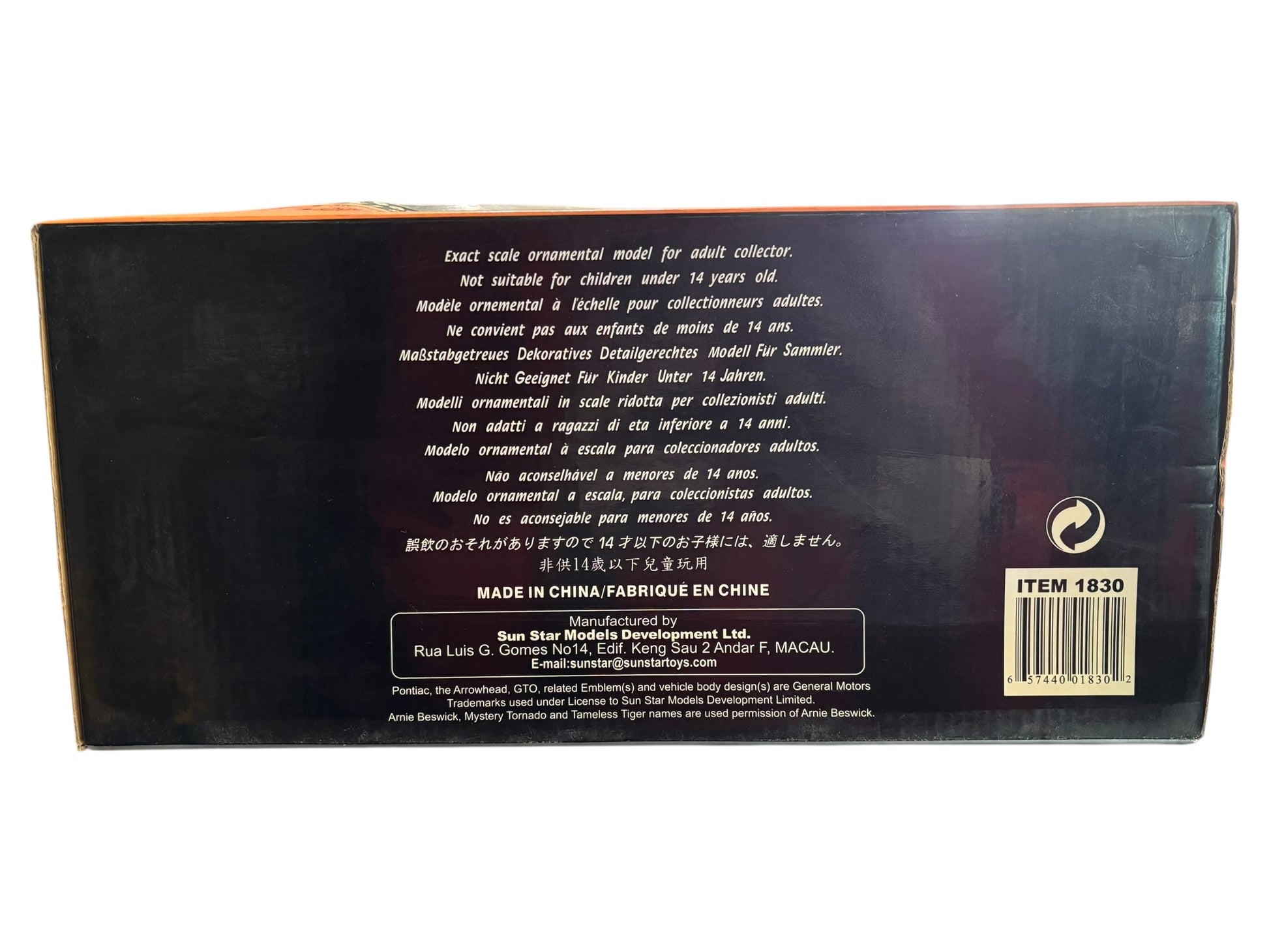 "Rev up your collection with the limited edition Arnie "The Farmer" Beswick signed 1964 Pontiac GTO. This highly coveted collectors car is 1 of only 2000 produced by Sun Star. Be one of the lucky few to own a piece of racing history, signed by the legend himself!"