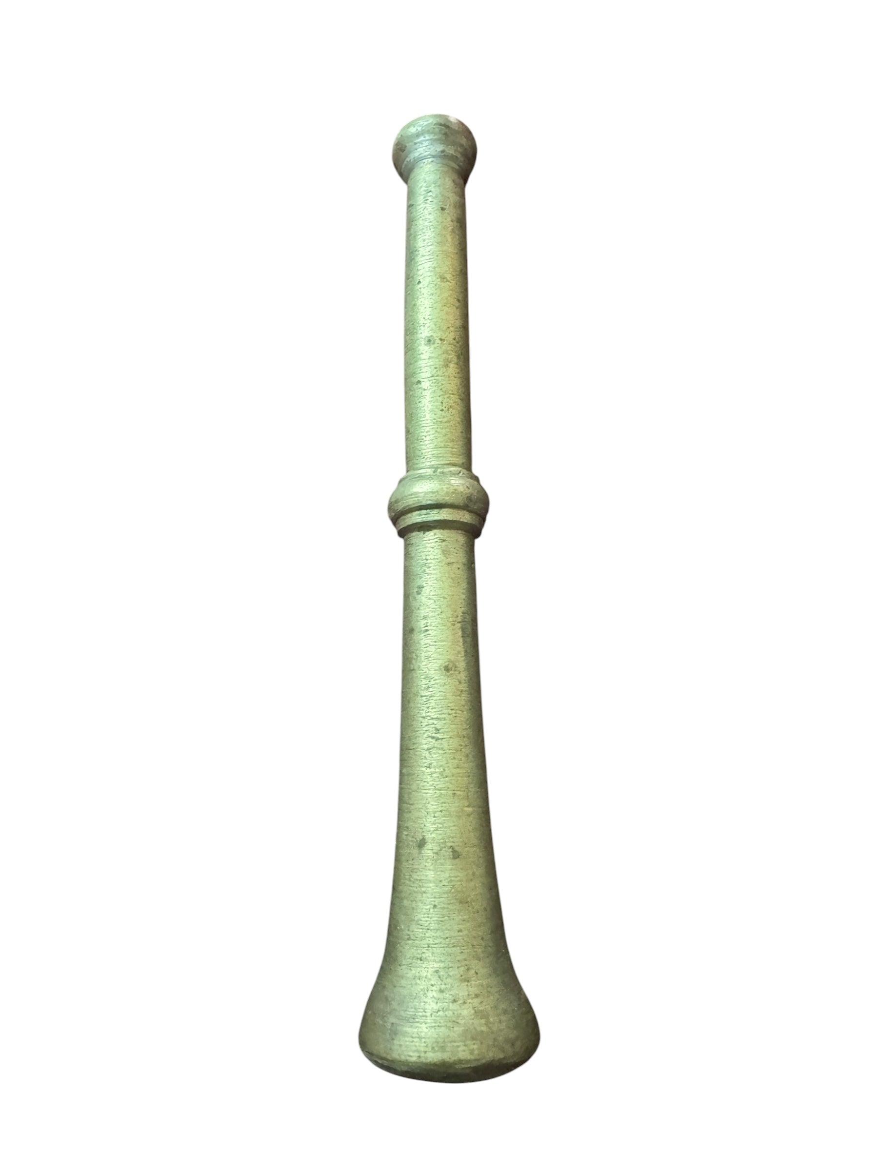 Very heavy large piece here. I obtained this at an old pharmacy estate sale. Very cool and very nice condition. I left it unpolished. Looks very Haloween on a table. lol Stamped Made in Syria. Stands at 11 inches together. Cup alone stands at 6 inches