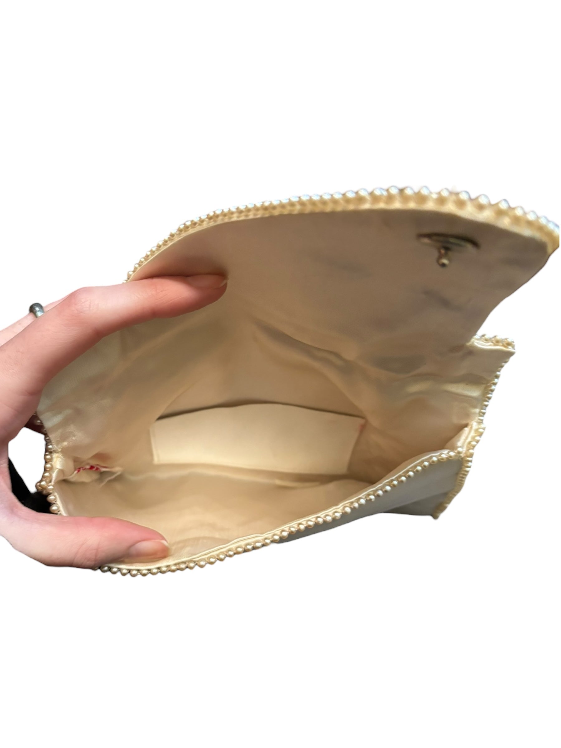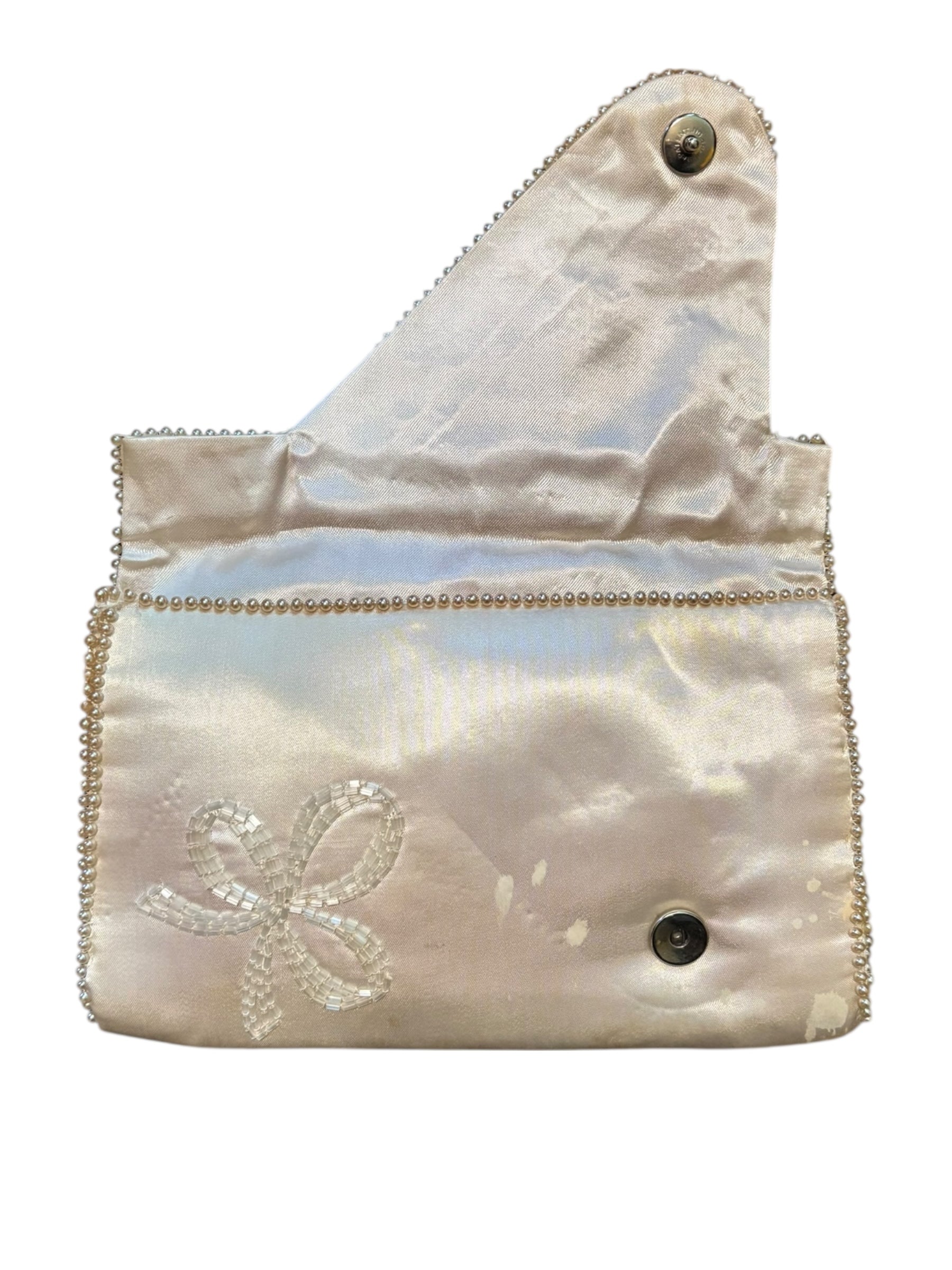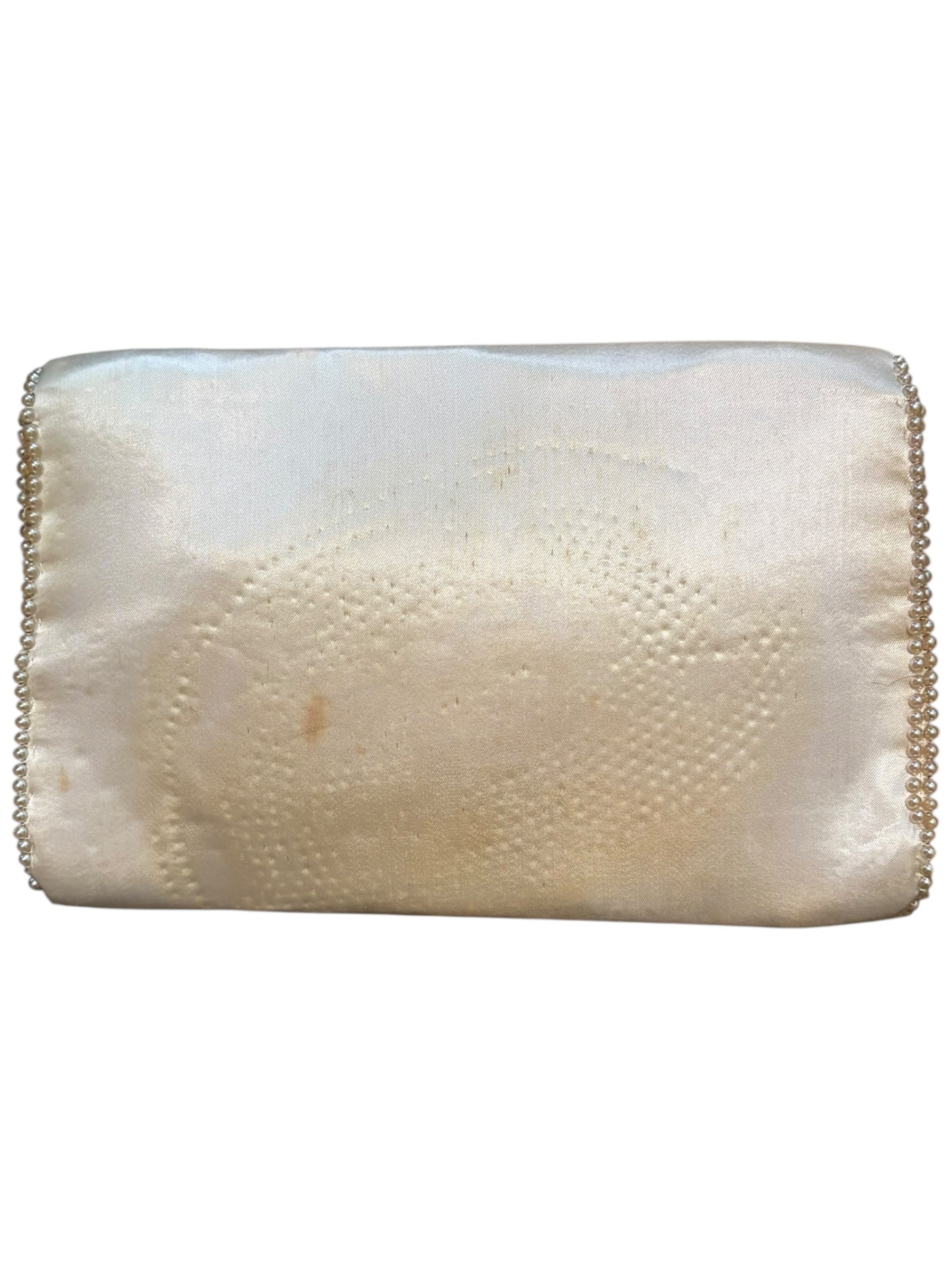 Antique Beaded Floral Vintage Silk Purse Clutch 5.5” Tall