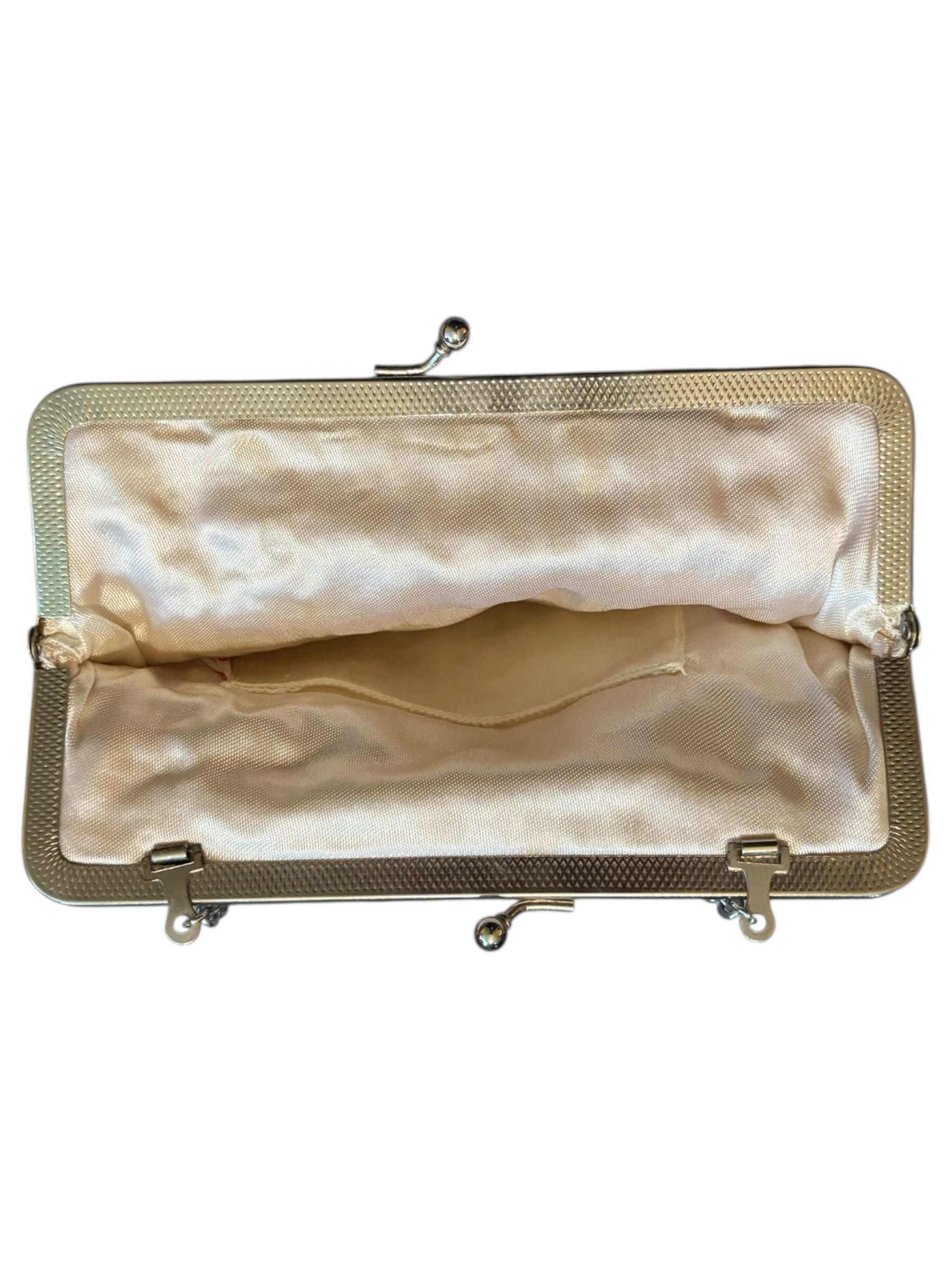 Antique Beaded Silver and White Intricate Geometric Clutch Handbag 11” With Strap