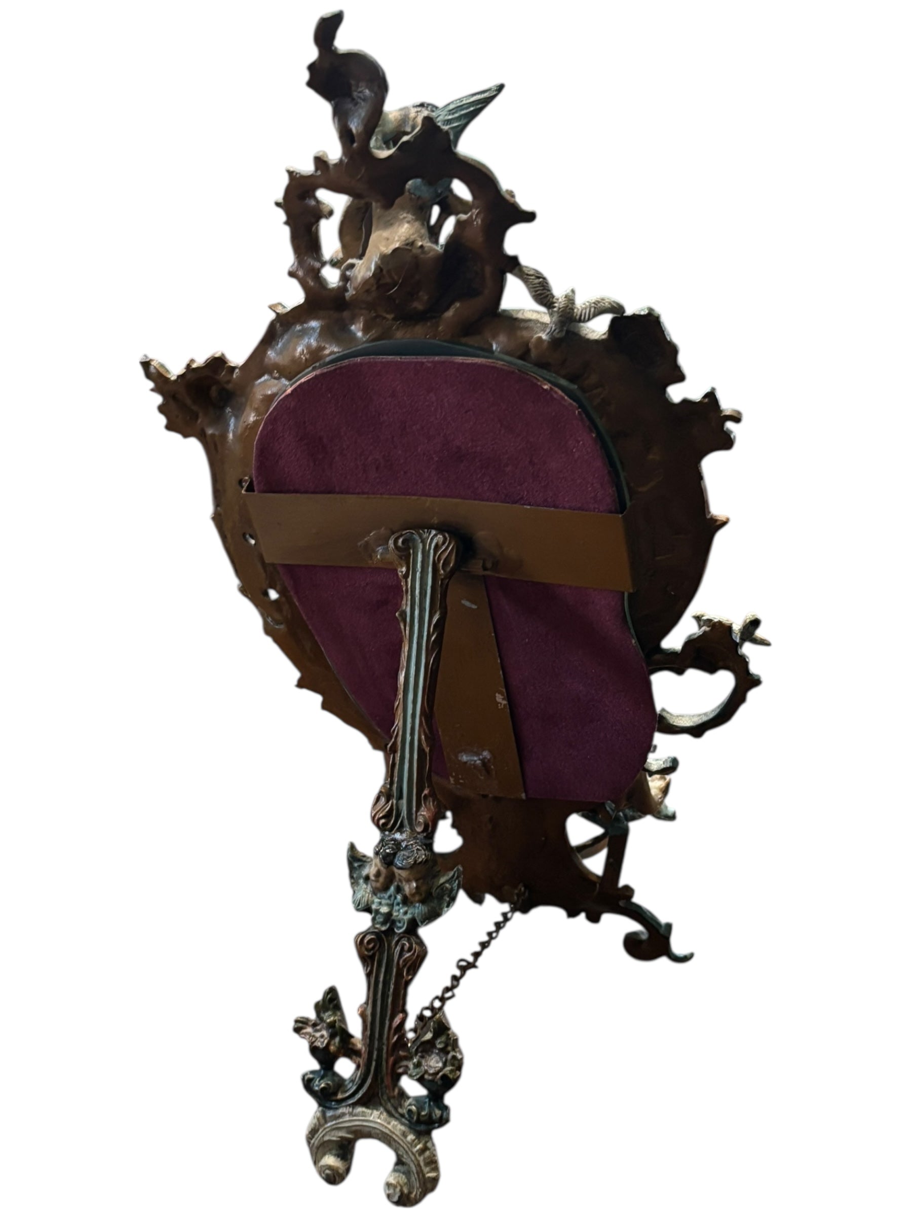Antique Cast Iron French Gilded Ornate Cherub Mirror W/ Holy Water Well 15”