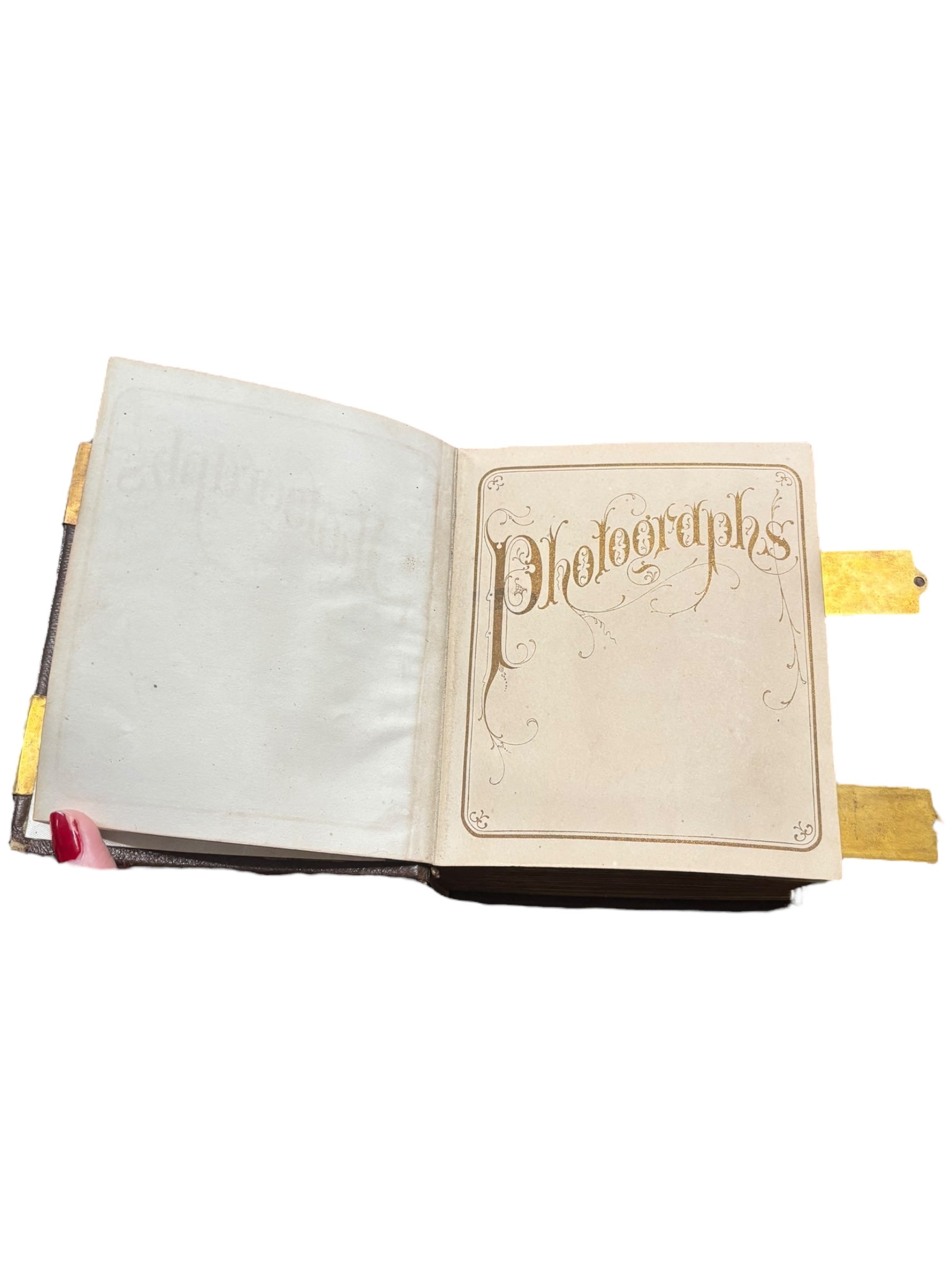 Antique Photo Album with Gold Closures Photos 6” tall