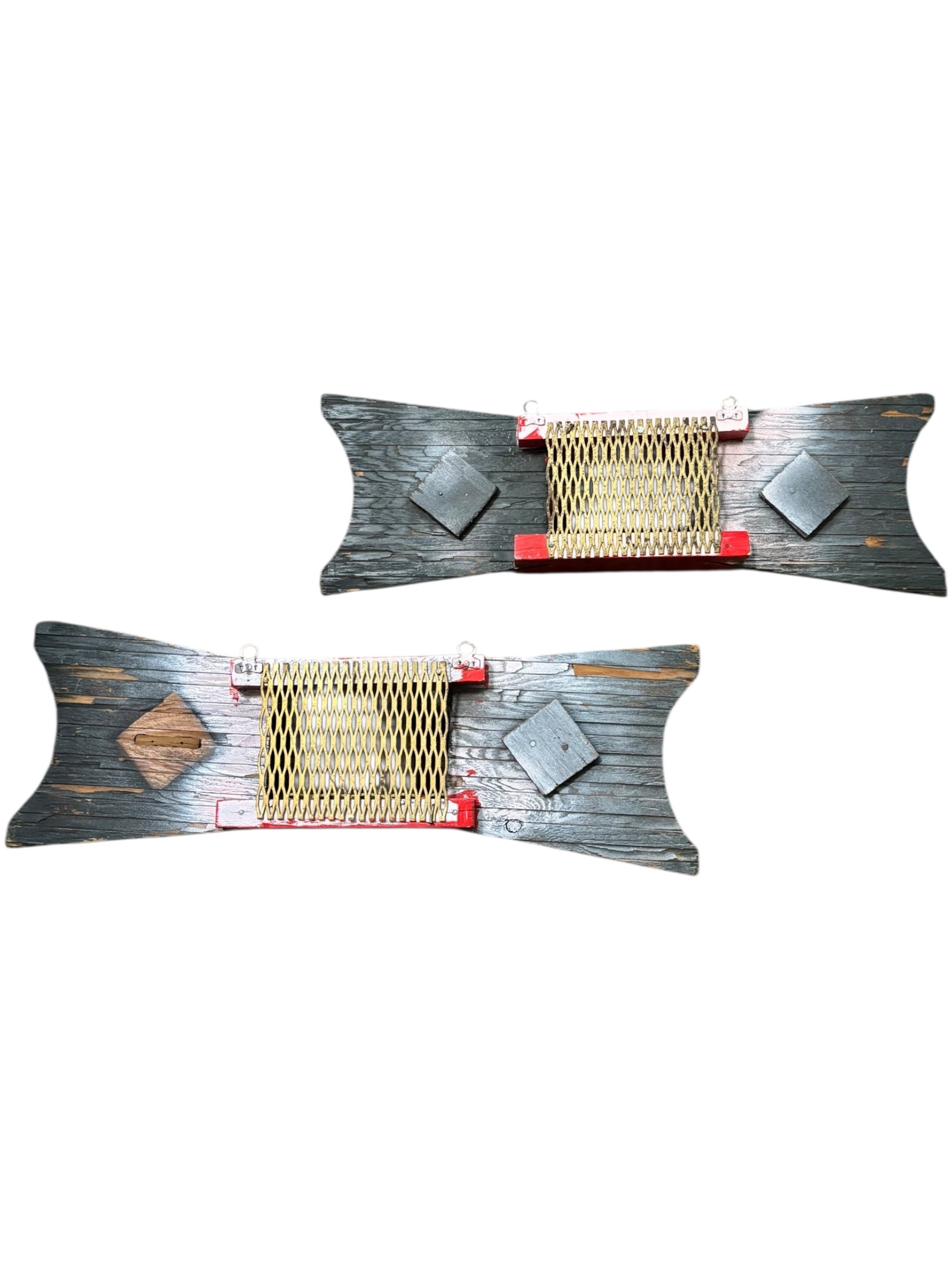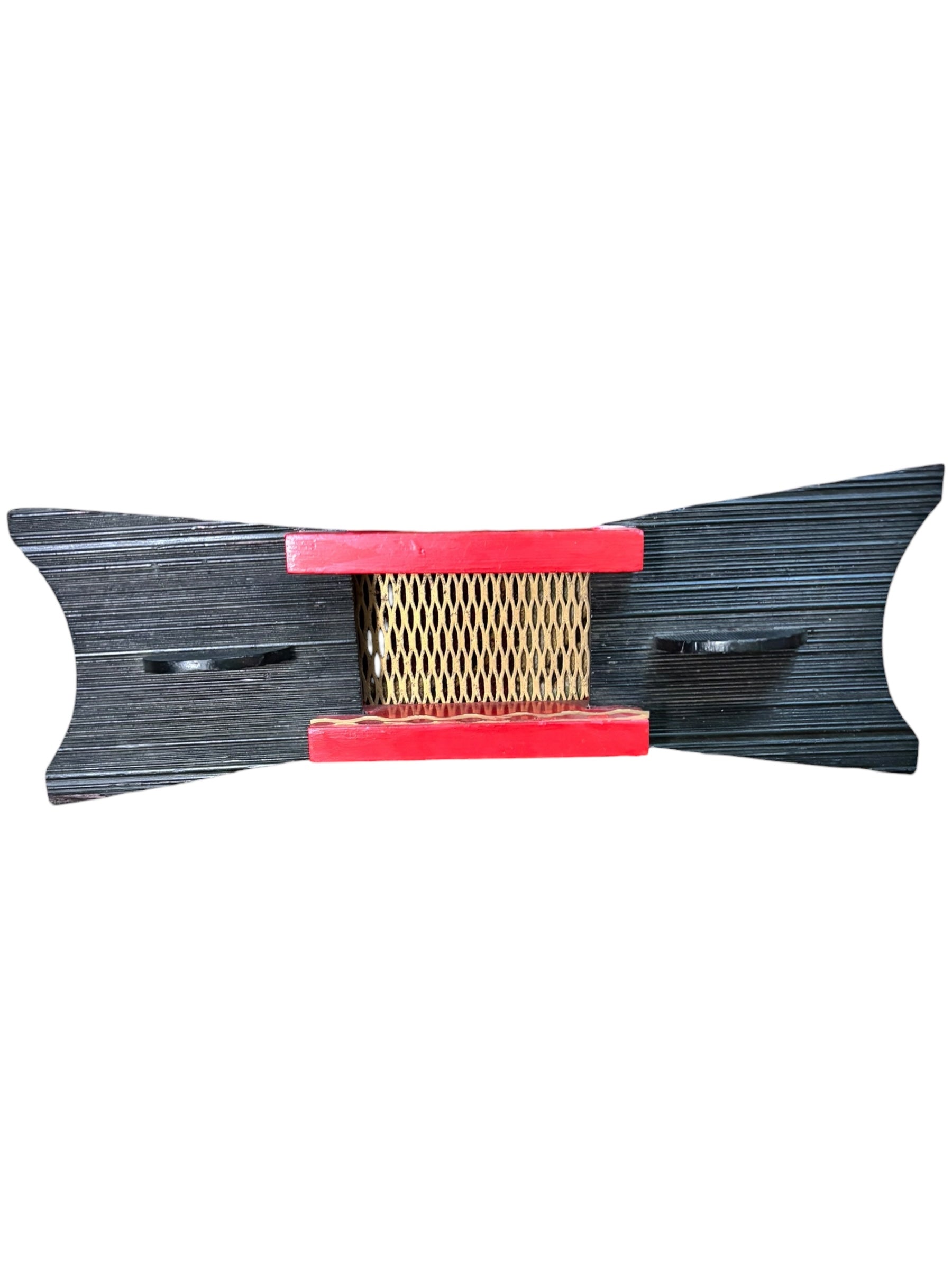 This set of 2 vintage mid century wall shelves adds a touch of Asian-inspired style to any room. The black, red, and gold atomic design creates a unique and eye-catching look, while the 6.5" tall, 19” long, 2.25” deep size is perfect for displaying small decor items. A must-have for collectors of retro home decor.