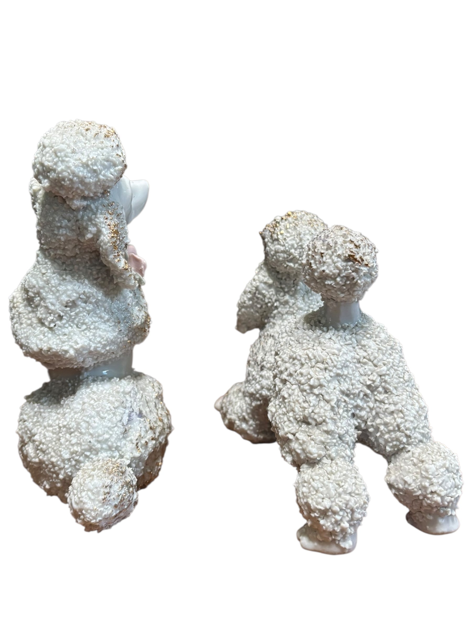 This vintage pair of 6” tall spaghetti poodles is a must-have for any collector. With their pristine condition and charming white design, they are a perfect addition to any home decor. No chips or cracks, just pure nostalgia and beauty.